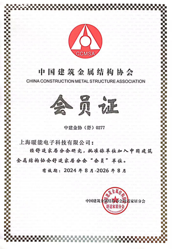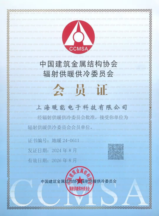 上海暖能电子科技有限公司成为中国建筑金属结构协会舒适家居分会和辐射供暖供冷委员会会员单位。