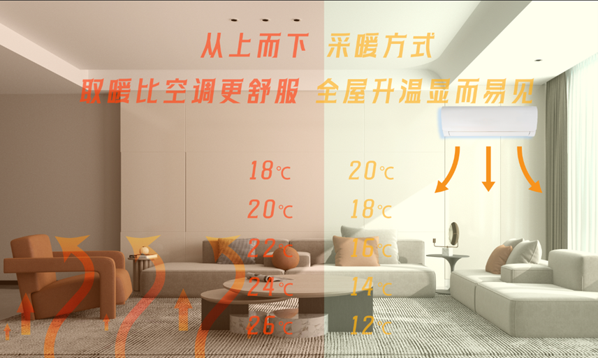 空调的制热是通过空调室内机吹出来的热风,与室内空气产生强制对流,从而让室内达到所需的温度,但热空气上浮导致“头热脚冷”,顶部与地面温差可达10℃以上。