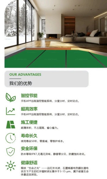石墨烯电热采暖因其高效节能特性成为现代供暖的新选择,而其节能优势的核心之一在于对体感温度的精准调控。研究表明,石墨烯发热时释放的远红外辐射(波长8-14μm)能直接作用于人体,产生“阳光般的温暖感”,使得体感温度比实际室温高4-5℃。这意味着,当室温设置为18℃时,人体的实际感受接近24℃的传统对流供暖效果,从而大幅降低能耗需求。